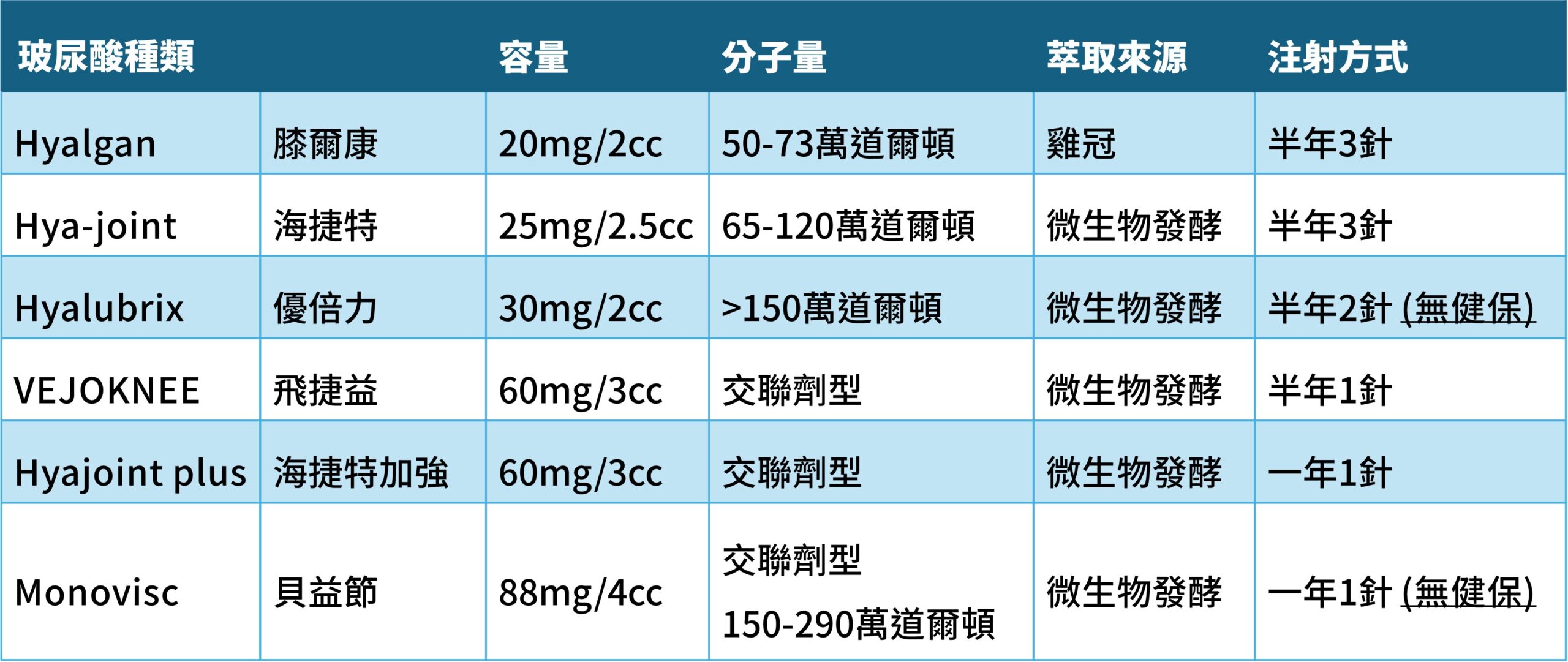上圖為本院有提供之玻尿酸品項,也歡迎至門診進一步諮詢